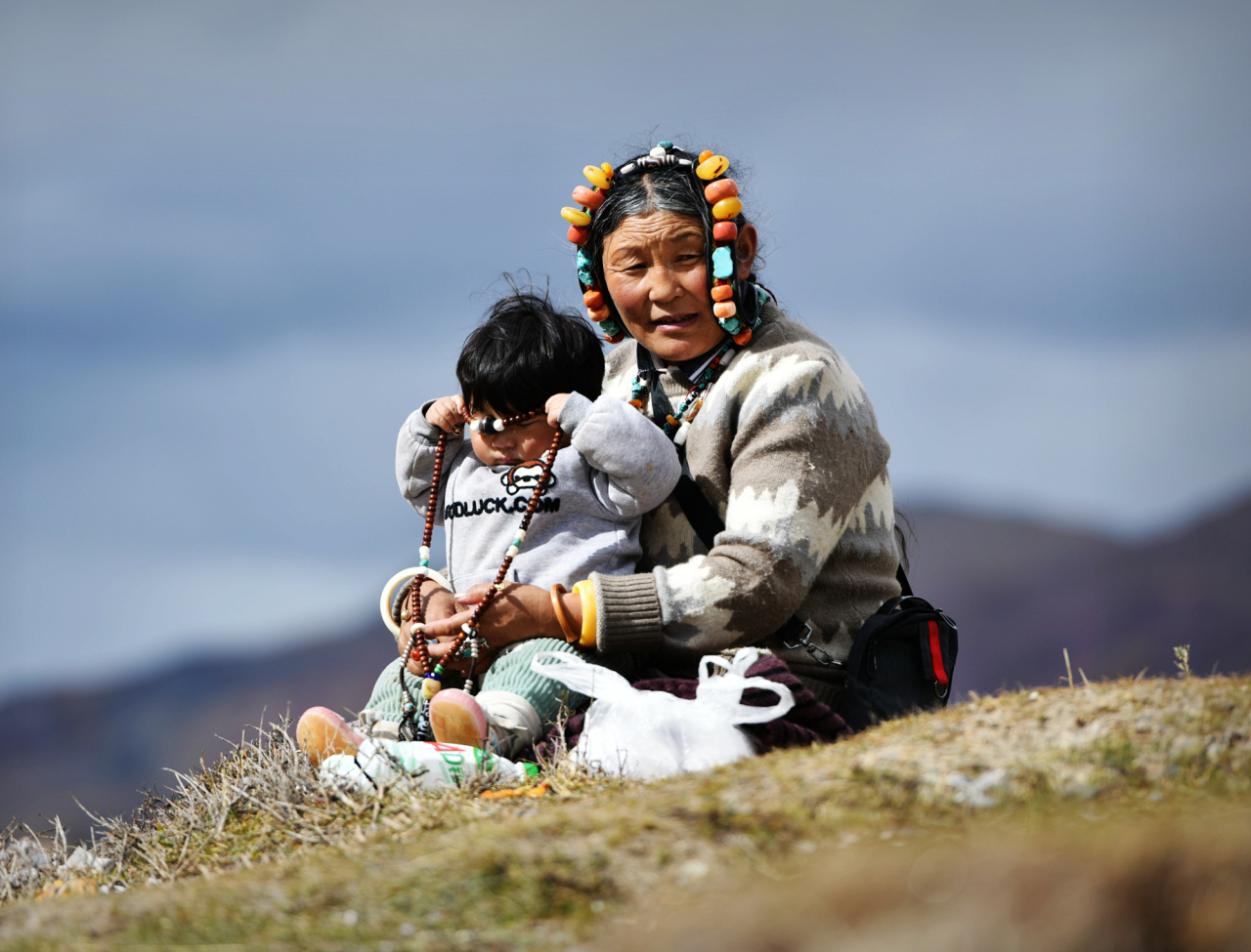 Une grand-mère en Chine se repose sur une colline, sa petite-fille dans les bras et un chapelet de perles de Bouddha scintillant doucement au soleil, symboles de chance et de foi. La culture et la tradition se transmettent ainsi, avec douceur, d’une génération à l’autre, comme elles le sont depuis des siècles le long des Routes de la Soie, où le bouddhisme continue de façonner la vie spirituelle des communautés.