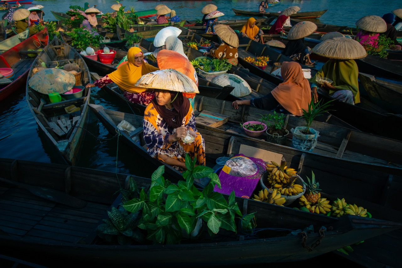 Le marché flottant de Lok Baintan, dans le Kalimantan du Sud, en Indonésie, existe depuis le XIVe siècle. Centre de commerce mais aussi lieu de rencontre communautaire, il rassemble des femmes commerçantes qui pagaient sur leurs embarcations pour échanger des produits. Elles perpétuent ainsi les moyens de subsistance locaux et renforcent les liens sociaux et culturels transmis de génération en génération, à l’image des traditions d’échange dynamiques des Routes de la Soie.